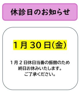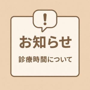 年内最終の診療は、12月28日18時までです。 混雑が予想されますので、時間に余裕をもってお越しください。 令和7年(2025年)1月4日(土)8時半より 通常通りの診療を開始いたします。 なお、休診中の当番医は、 【医 […]