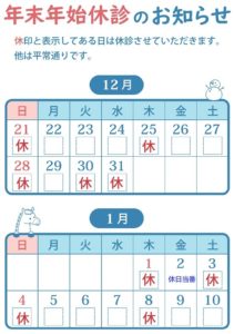 年末年始休診のお知らせ